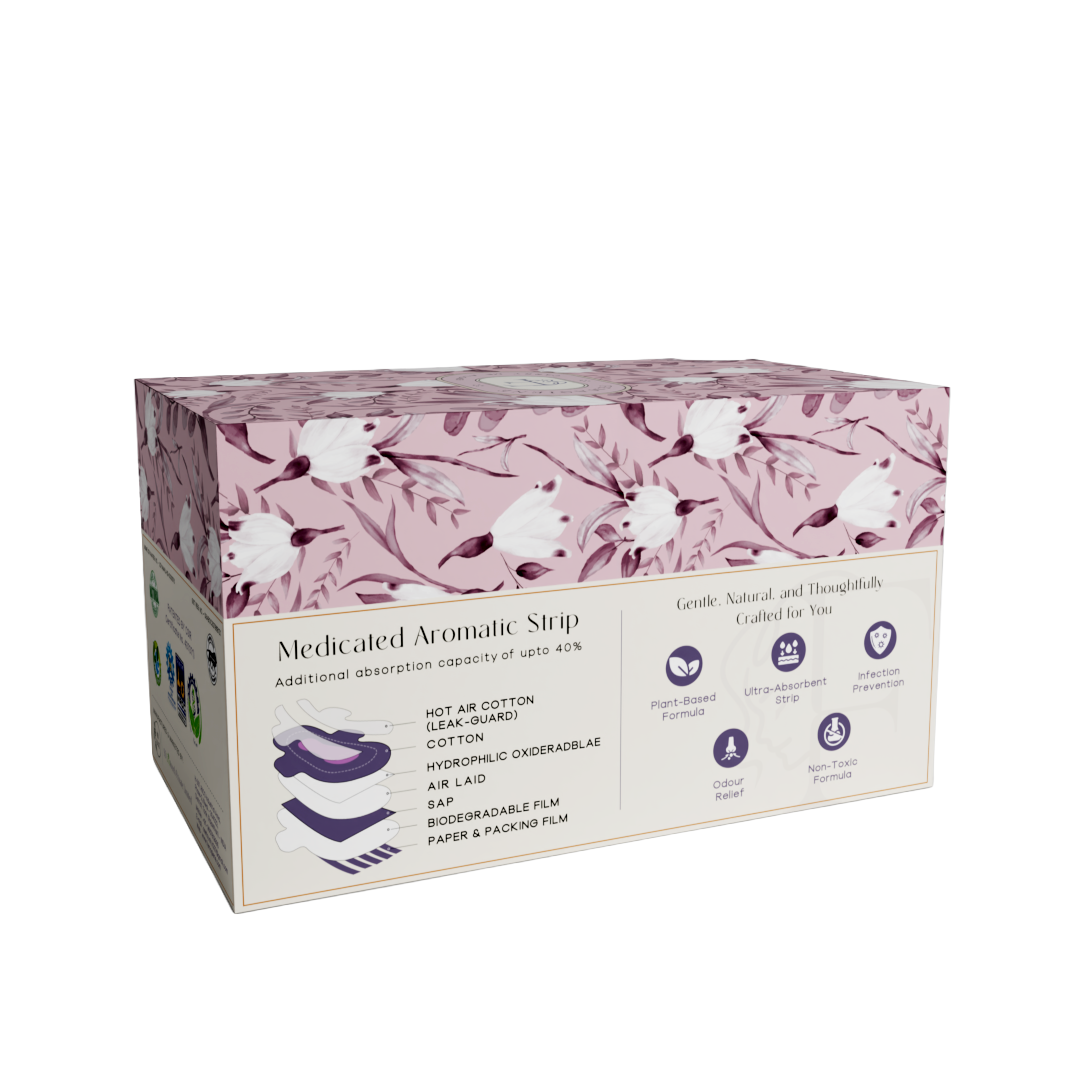 Experience a worry-free period with our biodegradable, organic sanitary pads. Infused with natural herbs for rash and infection prevention, these pads offer 40% more absorption capacity than others, giving a gentle, chemical-free experience.